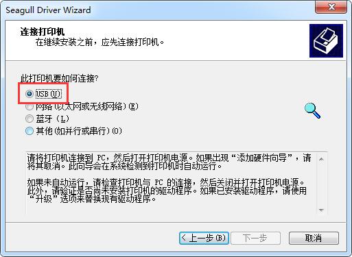 3.选择连接方式,默认的是USB,如果知识兔已经连接选择USB可自动识别打印机