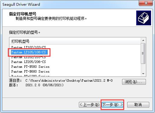 5.选择打印机型号【Pantum LT105/106-CS】,单击【下一步】
