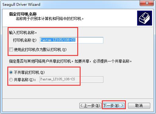 7.输入打印机名称,默认即可,知识兔选择是否共享此打印机,然后知识兔单击【下一步】按钮