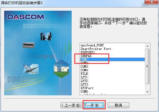 4.没有检测到打印机连接的可用USB口,手动选择端口,单击【下一步】