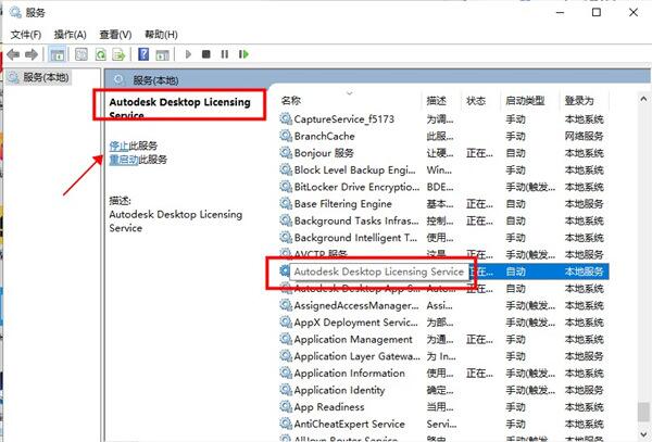 5.在服务中找到Autodesk Desktop Licensing Service服务知识兔点击停止