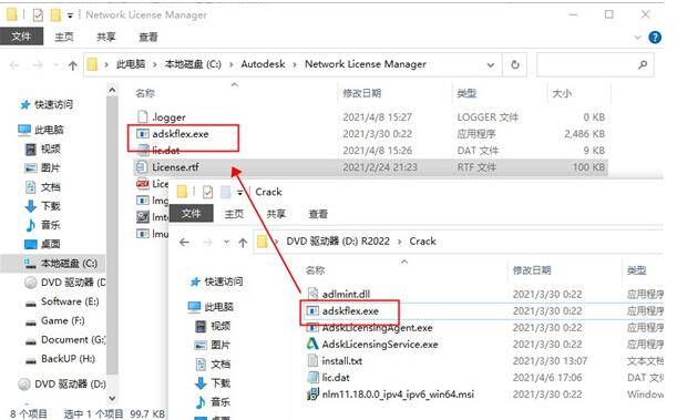 9.知识兔将crack补丁中的adskflex.exe,复制到目录下替换;