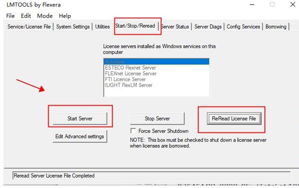 13.然后知识兔在”start/stop/read”知识兔点击”start server”,然后知识兔再知识兔点击”rereadlicense file”;