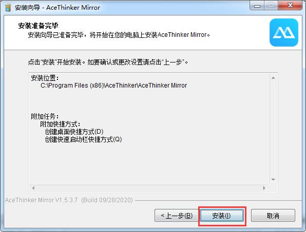4.选择软件的安装位置,默认的是【C:\Program Files (x86)\AceThinker\AceThinker Mirror】,单击【浏览】修改