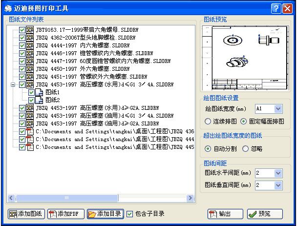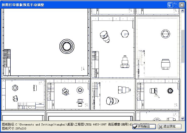 如果知识兔图纸尺寸为非标准尺寸,自动排列结果可能不是最省纸张的,这时可以使用”手动调整”功能。单击【预览】按钮,知识兔打开预览窗口: