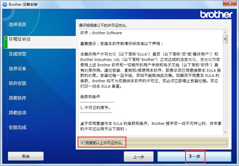 3.阅读软件的许可证协议条款,勾选【我接受以上许可证协议】,单击【下一步】