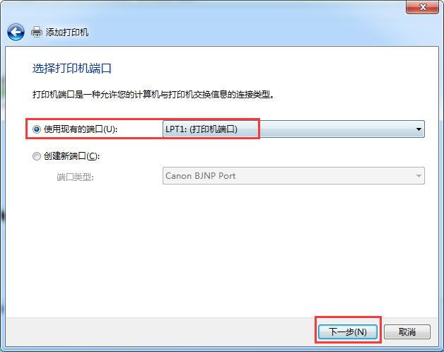 5.选择打印机端口,现阶段使用的端口,单击【下一步】
