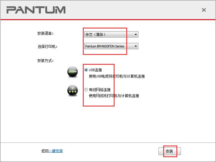 5.选择打印机型号【Pantum BM4000FDN】,单击【安装】