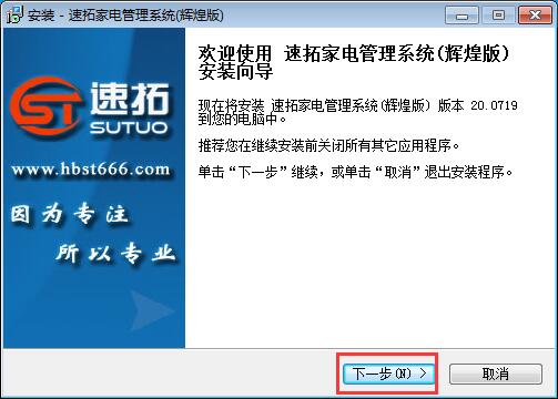 1.在知识兔下载速拓家电管理系统软件,解压,知识兔双击安装文件,进入安装界面,单击【下一步】