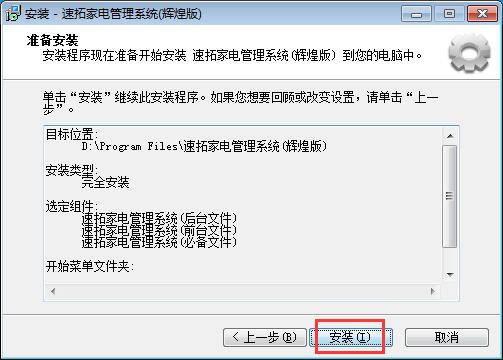 5.确认速拓家电管理系统安装信息,单击【安装】开始安装进程