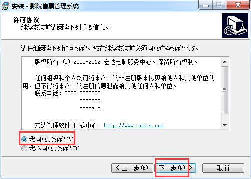 1.运行安装文件,出现了宏达影院售票管理系统安装向导界面,单击【下一步】继续