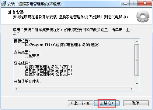 5.确认速腾家电管理系统安装信息,单击【安装】开始安装