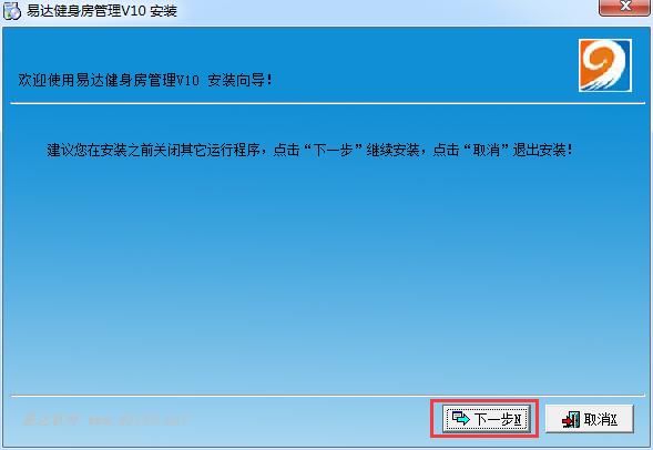 1.知识兔双击Setup.exe文件,进入欢迎安装易达健身房管理向导界面,单击【下一步】