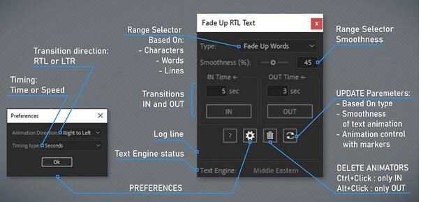 Fade Up RTL是一款AE制作从右向左显示多行动画文字的脚本,该脚本可以创建一个文本层表达式,因此显示一个字符或者依次显示一个单词,知识兔从右到左显示多行文本,类似于淡入字符或者淡入单词等文本预设,仅支持从右向左显示文本。