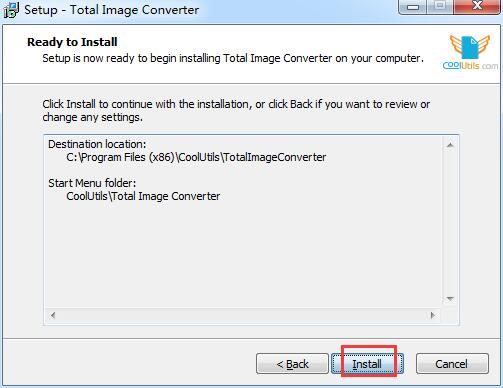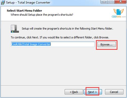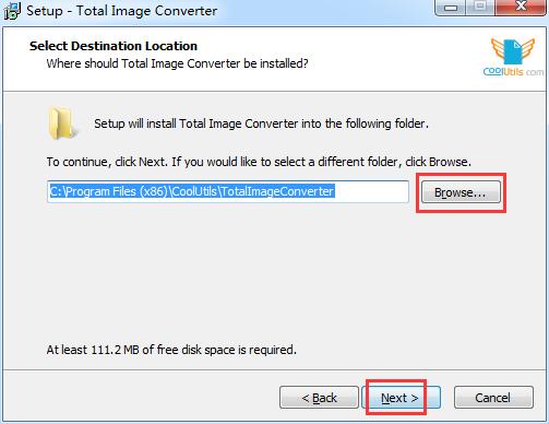 3.选择软件的安装文件夹,默认的是【C:\Program Files (x86)\CoolUtils\TotalImageConverter】,单击【browse】修改