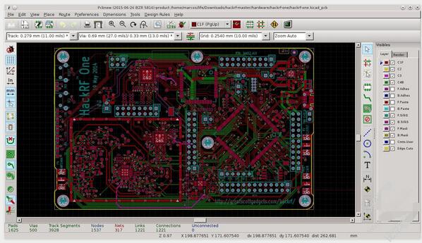 制作多达32层的专业PCB布局。KiCad现在有一个推动和推动路由器,它能够路由差分对和交互式调整走线长度。