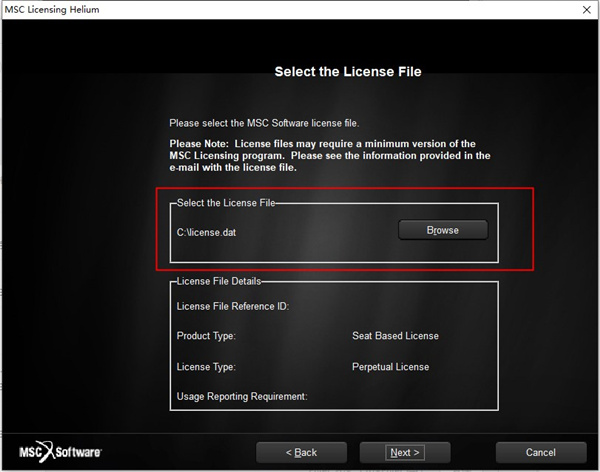 4、知识兔将license.dat复制到安全的位置,例如C盘或者安装目录中,知识兔点击浏览选择该许可证。