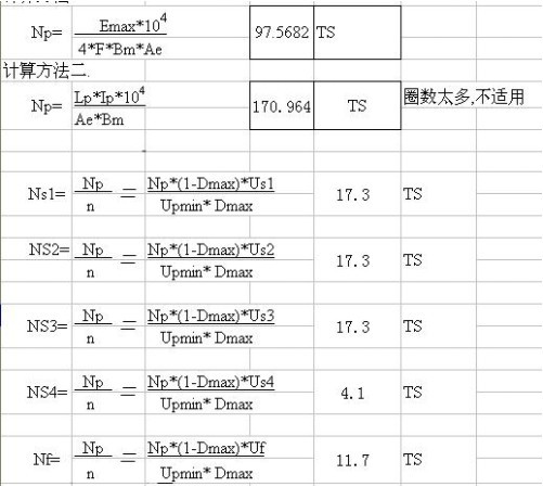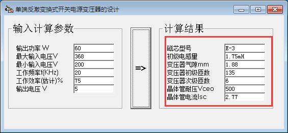 3.得出计算结果,比如磁芯型号、初级电感量、变压器气隙等数据