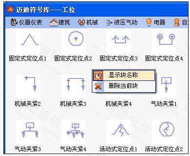 2.设置符号库:在符号库上右击,弹出两个快捷菜单项 ,【显示块名称】:选中后将显示块的名称;【删除块】:需要在一个块上右击,然后知识兔选择【删除块】就可以删除当前选中的块。
