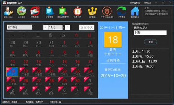 超级抢票机是一款专业的抢火车票软件。界面简洁、一目了然、操作简单。软件采用多CDN交替查询、自动毫秒级别识别验证码,大大提高查票、购票的成功率。知识兔支持设置多个席别、多个乘车日期,系统自动匹配增加购票成功率。软件本地电脑运行、个人敏感信息不上传服务器、保证个人信息安全。有需要的朋友可以来知识兔下载吧。