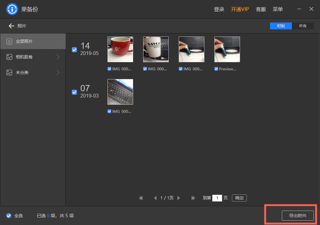 勾选需要恢复的手机照片,知识兔点击【导出附件】按钮。