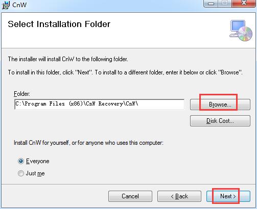 3.选择安装位置,默认的是【C:\Program Files (x86)\CnW Recovery\CnW\】,单击【browse】修改