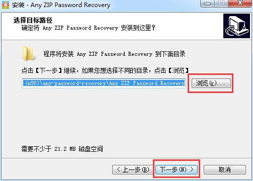 3.选择安装目的地,默认的是【C:\Program Files (x86)\any-password-recovery\Any ZIP Password Recovery】,单击【浏览】自定义
