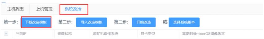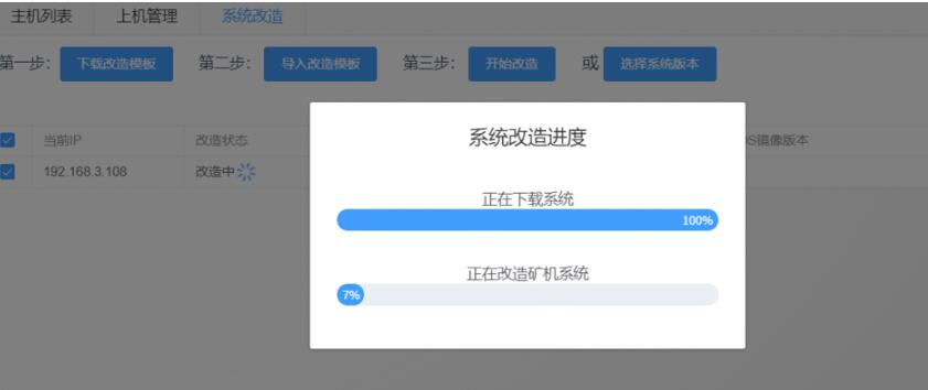 第三步:填写完以后保存表格,在本地群控系统改造知识兔点击”导入改造模板”,勾选要升级或降级的矿机,并知识兔点击”开始改造”。升级过程中禁止掉电,否则矿机有可能会变成”砖头”,需要重新刻录U盘来恢复。