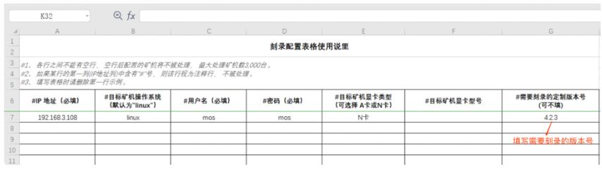 5、目标矿机显卡型号和需要刻录的定制版本号,两个只能选择填写一个,例如选择了矿机显卡型号,则系统会根据选择的显卡型号自动匹配适合当前矿机的系统版本;例如填写了定制版本号,则按定制版本号进行升降级。
