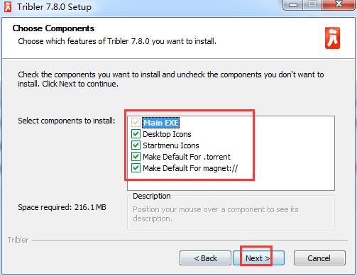 2.选择Tribler安装组件,勾选对应的选项