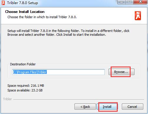 3.选择软件的安装文件夹,默认的是【C:\Program Files\Tribler】,单击【browse】自定义,单击【install】开始安装