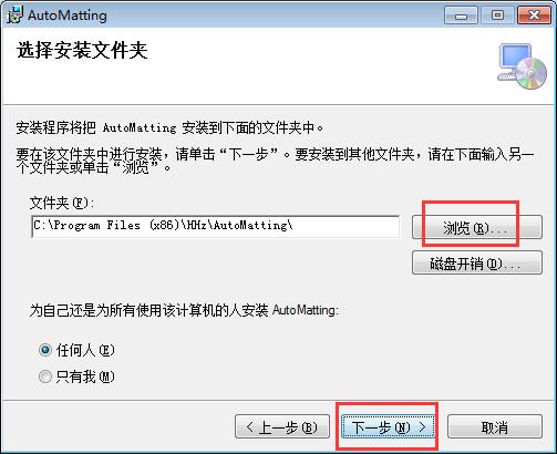 2.选择安装目的地,默认的为【C:\Program Files (x86)\HHz\AutoMatting\】,单击【浏览】修改
