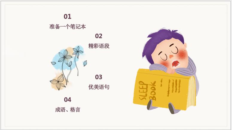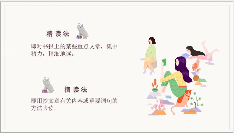 高尔基说”书籍是人类进步的阶梯”,书中自有黄金屋,书中自有颜如玉,倡导知识兔要多读书,现在很流行各种读书分享会,知识兔可以在读书会中分享各种知识和书籍,知识兔小编带来了读书分享会PPT模板,清新的背景,棕色的字体,书桌背景图片,还搭配各种卡通的插图,风格清新。