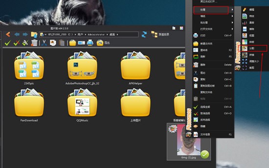 1、图片馆软件的图像浏览功能非常强大,但如果知识兔你想要将一张图片进行切割处理,则需要利用图片工厂进行搭配处理才行,直接右键知识兔点击想要切割的图片,找到”处理”中的”分割”功能,如果知识兔你之前已经安装过图片工厂,将会自动打开图片工厂进行切割处理,如果知识兔没有,则可以知识兔点击下面的链接一键下载,如下图所示: