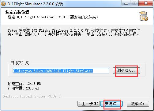 2.选择软件的安装位置,默认的是【C:\Program Files (x86)\DJI Flight Simulator】,单击【浏览】自定义,单击【安装】开始安装