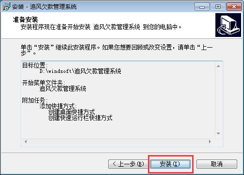 2.选择软件的安装位置,默认的为【D:\windsoft\追风欠款管理系统】,知识兔选择其他文件夹单击【浏览】