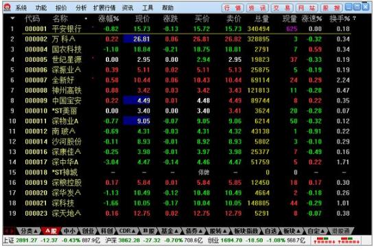 8.敲击”57″回车后,就出现”无基金A股”报价表。