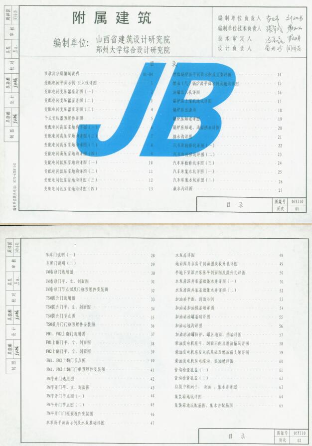 本分册适用于变配电间、锅炉房、汽车库、水泵房、加油站、柴油发电机房、管沟检查孔盖、垃圾站等七类附属建筑各种节点构造,供设计选用。