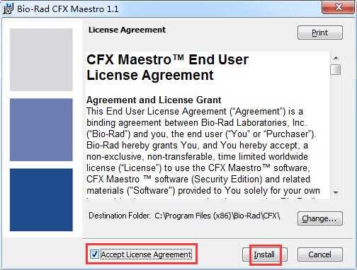 4.勾选【Accept license agreement】,单击【install】开始安装CFX Maestro