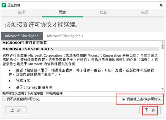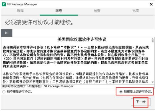 4.再次出现许可协议,勾选【我接受上述2条许可协议】,单击【下一步】