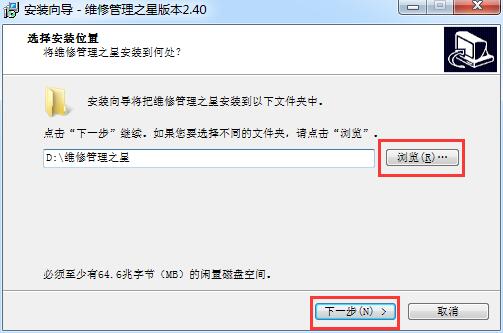 1.知识兔双击安装文件,出现软件的安装界面,知识兔选择安装位置,默认的是【D:\维修管理之星】,知识兔可以单击【浏览】自定义