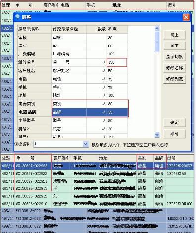 在调整窗口里还可以调整左右位置,调整列的宽度和名称等等。