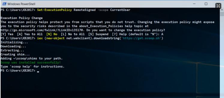 $ iex (new-object net.webclient).downloadstring(‘https://get.scoop.sh’)