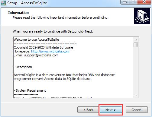 1.知识兔双击安装文件,进入AccessToSqlite安装向导界面,单击【next】