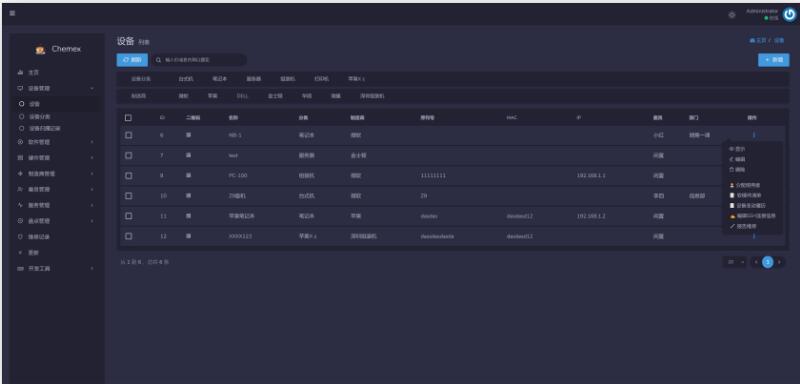 Chemex是一款免费开源的ICT资产管理系统,具有简洁的界面,丰富的功能模块,知识兔包括设备管理、硬软件台账管理、程序管理、盘点管理和数据图表等,程序完全开源,知识兔可以无限制的修改代码以及部署服务。知识兔可以帮助开发者快速的开发出专属的ICT资产管理系统。