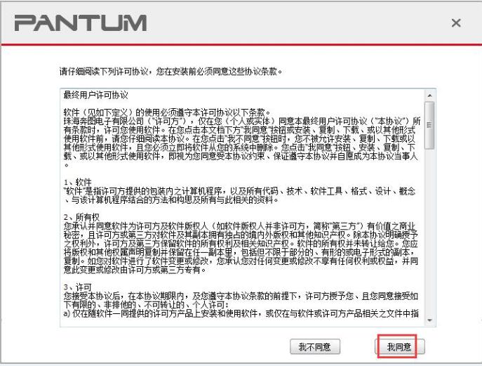 2.解压下载的奔图BP4005DN驱动,知识兔双击运行Autorun.exe,出现软件的许可协议条款,知识兔选择【我同意】