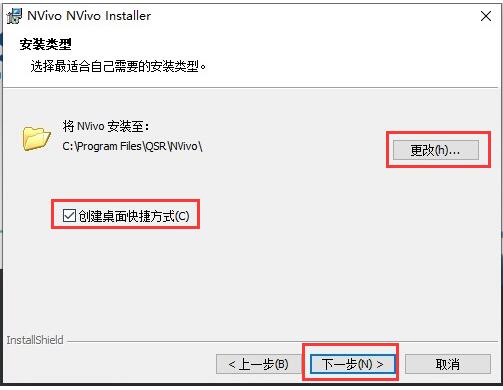 4.选择软件的安装位置,默认的是【C:\Program Files\QSR\NVivo】,单击【更改】自定义,勾选【创建桌面快捷方式】,单击【下一步】就开始安装了,耐心等待