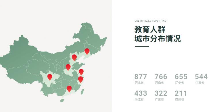 而知识兔这款图表示利用中国地形图来分析教育人群的城市分布情况,简洁大方,十分好看。