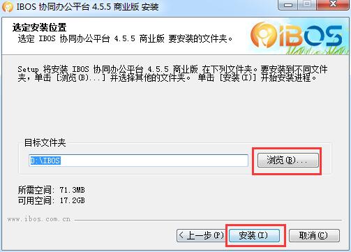 3.选择安装位置,默认的是【D:\IBOS】,知识兔选择其他文件夹单击【浏览】调整,单击【安装】开始安装进程