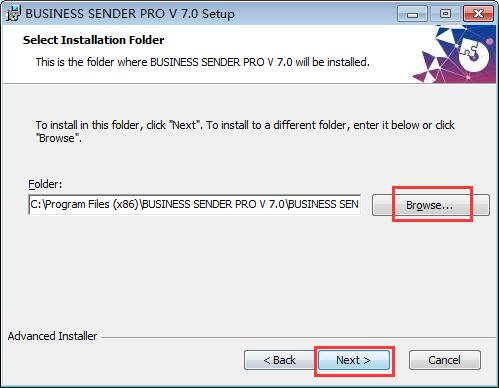 2.选择安装目的地,默认的是【C:\Program Files (x86)\BUSINESS SENDER PRO V 7.0\BUSINESS SENDER PRO V 7.0\】,知识兔选择其他文件夹单击【next】